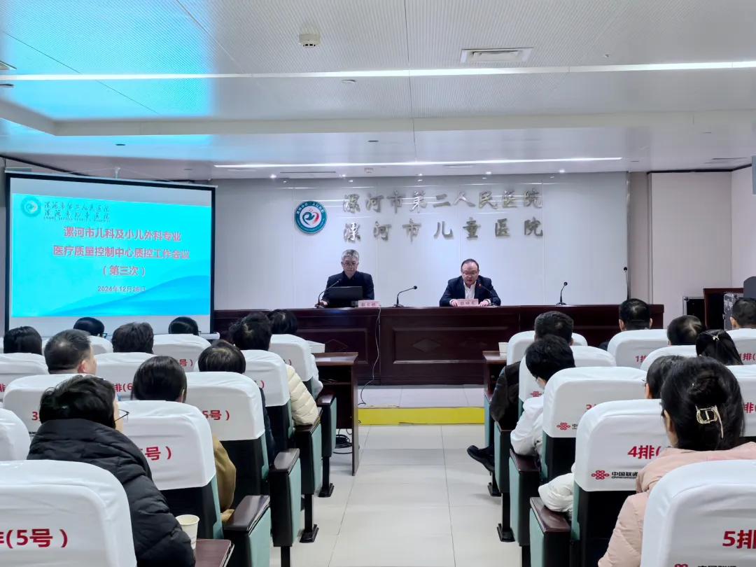為進一步提高漯河市兒童川崎病、癲癇診療規范化及降低兒童抗菌藥物使用強度,推動全市兒科醫療質量持續提升。12月26日下午,漯河市兒科及小兒外科專業醫療質量控制中心在市二院召開2024年第三次質控工作會議暨第二次專題培訓會,副院長張曉東、專委會全體成員及市二級以上醫療機構兒科主任及骨干醫生參加本次會議。會議由質控中心主任郭長根主持。