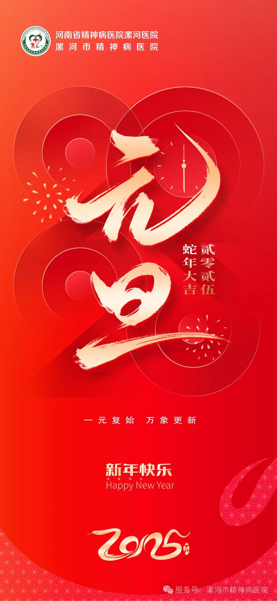 凡是過往,皆為序章,所有未來,皆為可盼。2025年,漯河市精神病醫(yī)院祝大家新年快樂!福運滿滿!