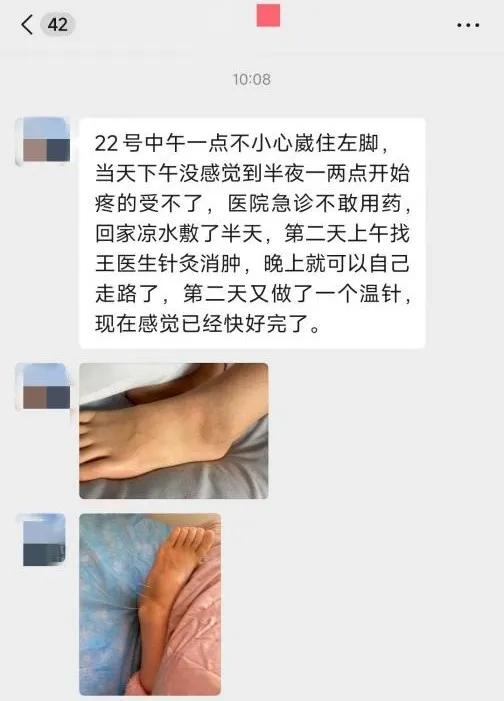 近日,一位懷有3個月身孕的孕媽媽下樓梯時不慎急性腳扭傷,因孕早期無法行放射檢查,無法口服止痛藥物及外用活血化瘀的敷貼,建議觀察。患者在疼痛難忍的情況下,求助漯河醫專二附院(漯河市骨科醫院、漯河市立醫院)婦產科中醫婦科門診,副主任中醫師王偉偉立即給與普通針刺,旨在消腫止痛,第二日復診時,患者已經可以擺脫輪椅,自行走到診室。患者感激地說:“王醫生的針真厲害!”二診又給予溫針灸治療,旨在化瘀通絡。隨訪時,患者已經基本痊愈。