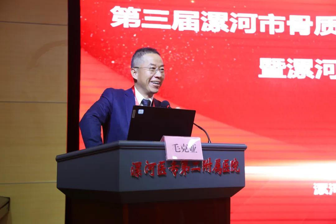 中國人民解放軍總醫院毛克亞教授首先對漯河市骨科醫院的邀請表示感謝,并表示本次骨質疏松和骨礦鹽疾病分會學術年會為業內同仁搭建了一個互相學習、交流互鑒的良好平臺,為豫中南地區的骨質疏松、骨礦鹽疾病與骨科康復的發展做出了巨大的貢獻。他表示會盡己所能,與各位同仁分享專業前沿動態,增強學術交流,也預祝本次大會取得圓滿成功。