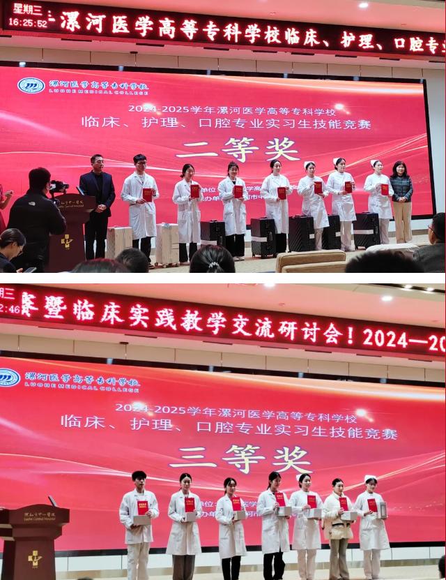 1月8日,在由漯河醫學高等專科學校主辦,漯河市中心醫院承辦的“2024-2025學年漯河醫學高等專科學校臨床、護理、口腔專業實習生技能競賽”中,漯河市中醫院實習生代表隊獲得一個二等獎、兩個三等獎、一個優秀獎的好成績。
