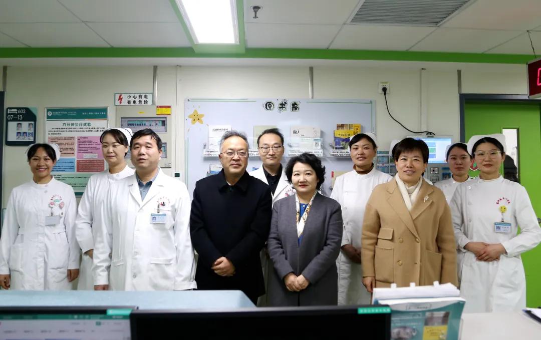 隨后張祎捷一行來到住院病區,對醫院取得的成績給予了充分肯定,鼓勵大家在新的一年里繼續努力,不斷提高醫療技術水平,為患者提供更加優質的醫療服務。同時,領導們還關心地詢問了醫護人員的工作和生活情況,希望他們在工作之余能夠照顧好自己和家人,并送上節日的慰問品。