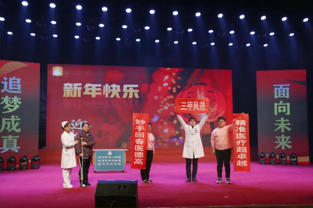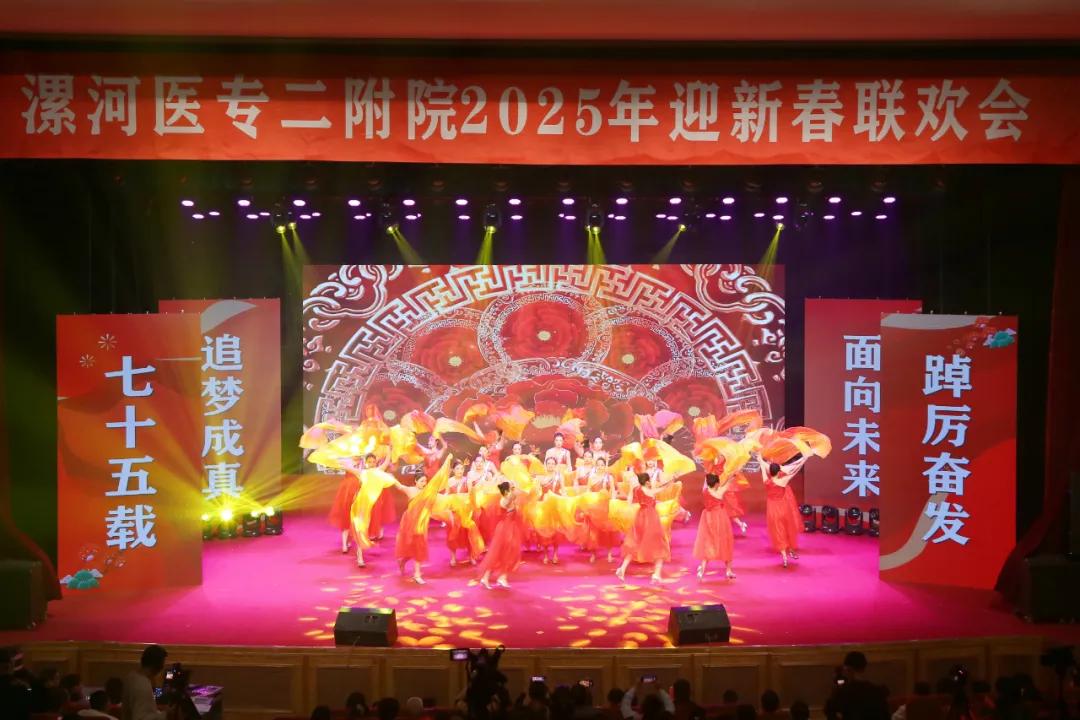 為慶祝漯河醫(yī)專二附院(漯河市骨科醫(yī)院、漯河市立醫(yī)院)建院七十五周年,1月21日,漯河醫(yī)專二附院2025年迎新春聯(lián)歡會在漯河市科教文化藝術(shù)中心大劇院隆重舉行。漯河醫(yī)學(xué)高等專科學(xué)校校長張祎捷,市衛(wèi)生健康委副主任于宏,市醫(yī)保局副局長于懷江,漯河醫(yī)專黨委副書記邊曉峰,市科協(xié)副主席臧明濤,市總工會四級調(diào)研員李敏,漯河醫(yī)專紀委書記王蕾,漯河醫(yī)專副校長張福華、馬永超,漯河醫(yī)專二附院黨委書記柴運洪,漯河醫(yī)專二附院院長王齊超,漯河醫(yī)專黨辦主任楊曉宇,漯河醫(yī)專行政辦主任申耀強,漯河醫(yī)專團委書記周沛,市衛(wèi)健委醫(yī)政科科長胡艷麗,市總工會文教衛(wèi)工會主任谷賀衛(wèi),郾城區(qū)龍塔街道辦事處主任李瑩,郾城區(qū)巴山路居委會書記王梅芝,郾城區(qū)伊坪小學(xué)校長徐偉濤等出席。
