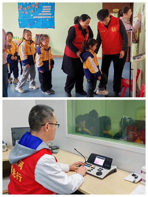來自召陵區區直幼兒園的孩子們與市殘疾人康復服務中心太陽班的孩子們一起參觀了測聽室了解如何測量聽力指標,參加了愛耳護耳知識小課堂,通過聆聽風趣幽默的講解直觀了解耳朵的構造和聽力檢測的原理,開啟了探索聽力奧秘的旅程,讓孩子們在輕松愉快的氛圍中學到了愛耳護耳知識。隨后市二院學雷鋒志愿服務團隊成員為孩子開展了聽力、視力檢測和身高、體重檢查,并與孩子一起互動游戲,陪伴孩子們度過了一段愉快的時光。