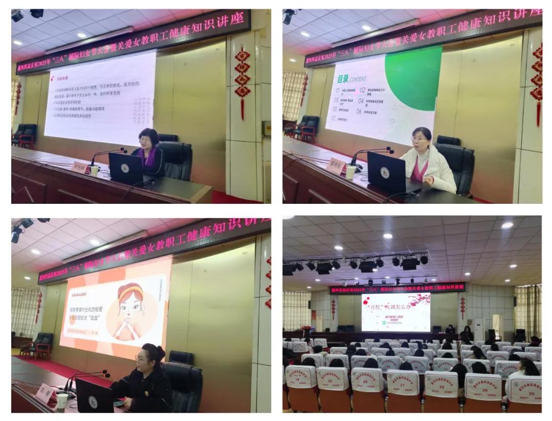 授課現場,婦產科何宏舸主任、心內二董艷彩主任、皮膚科陳敏副主任三位專家分別就《“月經”失調怎么辦》《心血管疾病健康科普-預防、急救與管理》《探索青春時光機的秘密和色斑皺紋說“白白”》進行精彩分享。授課過程中,三位專家通過理論講解、案例分析和互動交流相結合的方式,向女教職工們詳細講解了常見婦科疾病的早期發現及治療方法,以及如何在平時生活中預防心血管疾病的發生,對如何合理搭配營養知識方面得到了提升,最后,以如何預防皮膚衰老及改善方法,針對不同膚質提供了個性化的護理建議。
