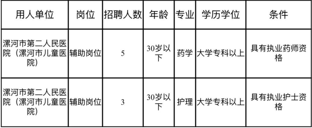 漯河市第二人民醫院(漯河市兒童醫院)因工作需要,需委托第三方以勞務派遣形式公開招聘輔助崗位人員共計8名,具體如下: