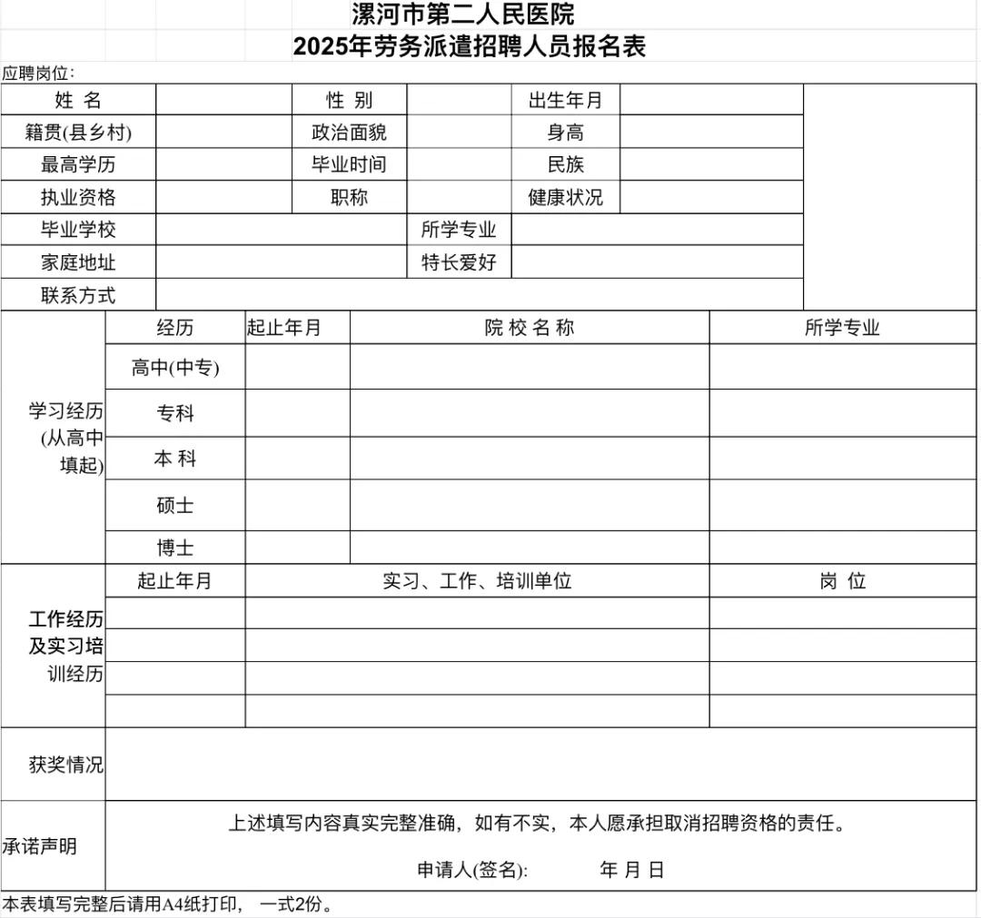 漯河市第二人民醫院2025年勞務派遣人員招聘公告