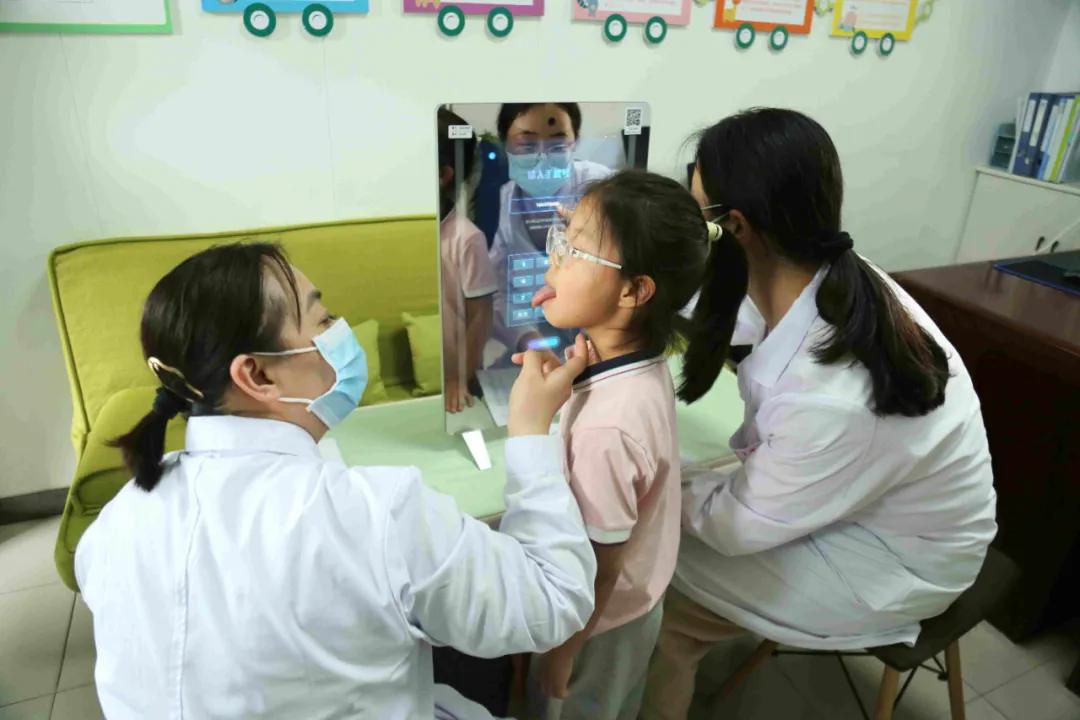 活動現場,兒科醫師團隊采用智能中醫體質辨識儀對幼兒進行初步數據采集,通過智能AI系統快速分析體質特征;同時,鄭芳麗、宋洋洋、龐映雪等醫生通過傳統中醫“望面色、聞聲息、問癥狀、辨舌脈”四診合參,綜合評估幼兒健康狀況。雙軌并行的評估模式既保留了中醫辨證的個體化優勢,又借助現代科技提升了篩查效率與數據精準度,為后續健康干預提供了科學依據。