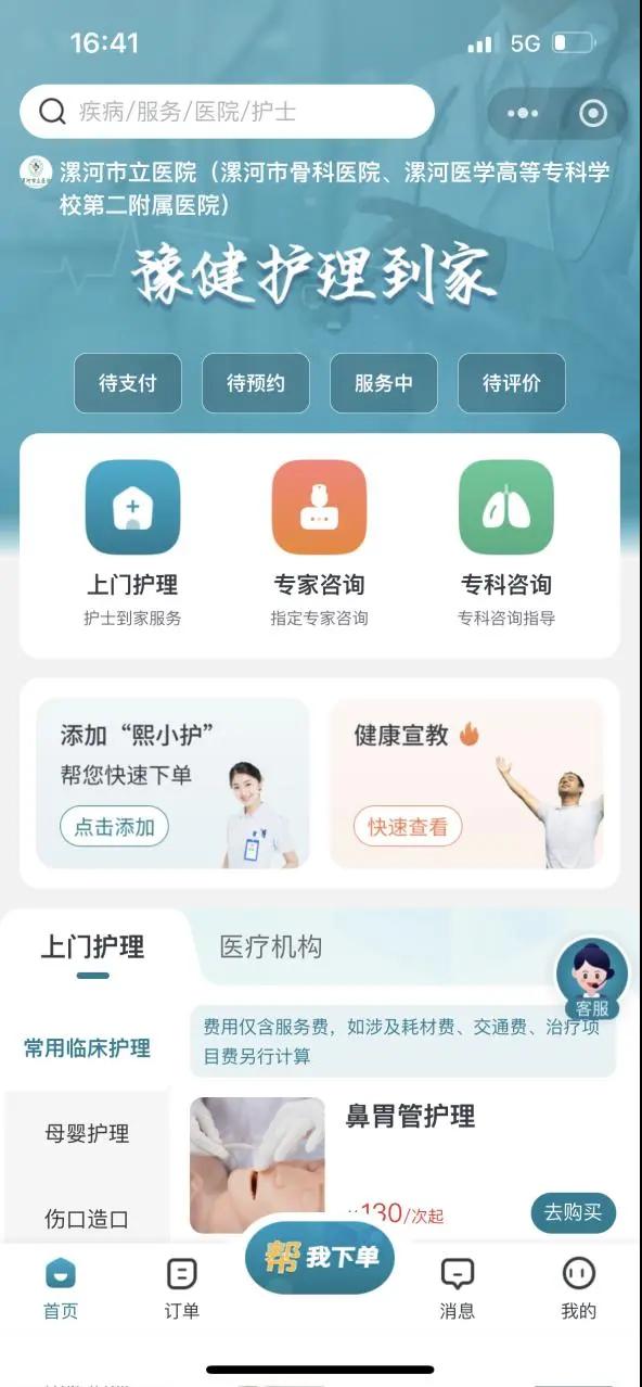 隨著社會老齡化加劇和慢性病患者的增多,居家護理需求日益增長。漯河醫專二附院(漯河市骨科醫院、漯河市立醫院)依托豫健護理到家平臺,用專業的醫療護理團隊和規范的服務流程,為行動不便、術后康復、老年病患等人群提供導尿、換藥、PICC維護、壓瘡護理等多項上門服務,讓患者在家也能享受到安全、便捷的醫療護理。護理零距離,關愛無止境!豫健護理到家將繼續用專業和溫暖守護每一位患者的健康,讓醫療護理服務更貼心、更人性化! (盧 闖 劉 丹 于揚波 劉 旭 袁錦鈺)