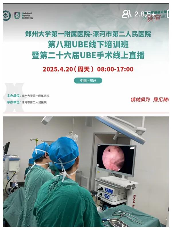據悉,鄭州大學第一附屬醫院骨科團隊已經連續開展了25屆UBE手術線上直播、七期線下培訓活動。此次將培訓班放在市二院舉辦,是希望通過交流互動,將UBE技術的最新理念和操作技巧在漯河扎根。