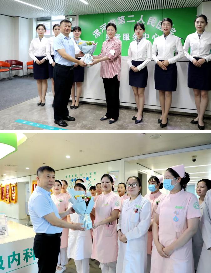 關愛護士隊伍,守護人民健康。5月12日上午,為慶祝第114個“5·12”國際護士節(jié),市二院黨委書記魏松,黨委副書記、院長胡海英攜院班子成員及相關職能科室負責人深入臨床一線開展節(jié)日慰問活動,向全院護理工作者送去鮮花,并致以節(jié)日的祝福和誠摯的問候。