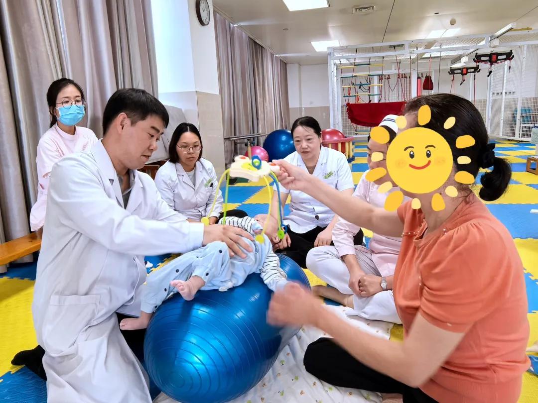兒童康復專家崔棟民通過評估腦癱患兒運動功能,指導康復團隊制定階梯式訓練計劃。