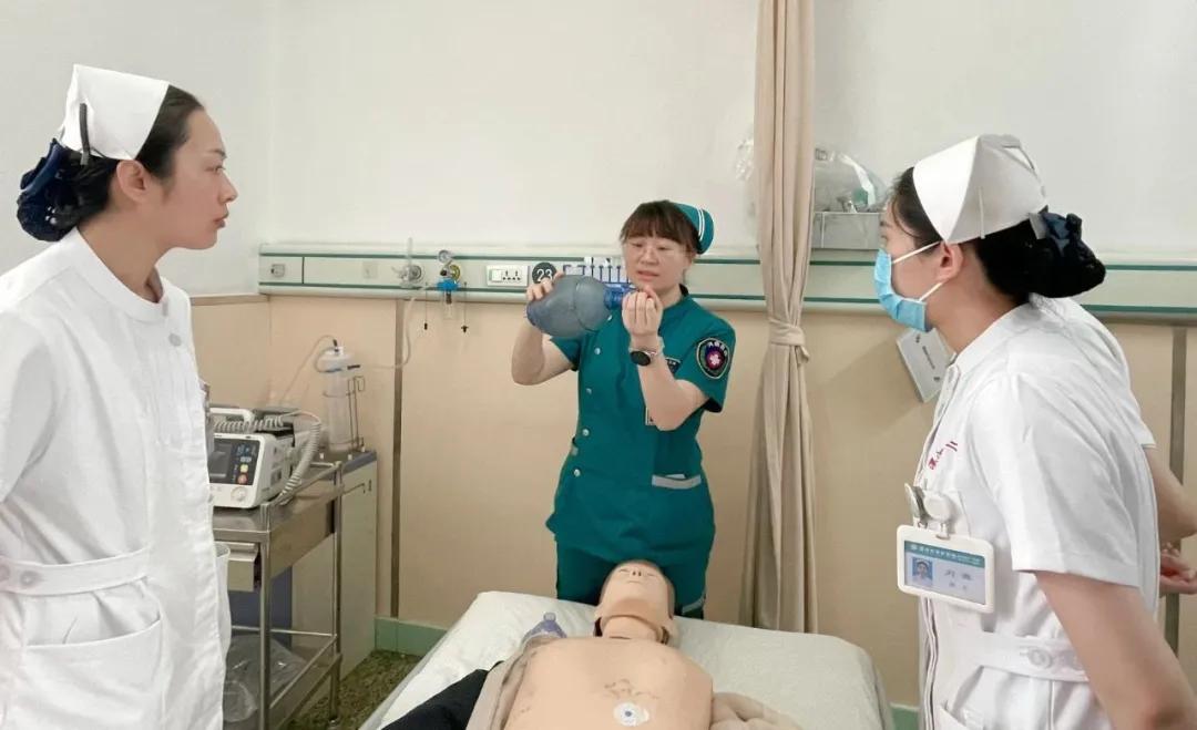 理論是基石,實踐則是檢驗能力的戰場。培訓環節——危重癥急救技能強化操作演練。婁金金護士長進行示范,并對每位護士的實操逐一點評指導,確保動作及流程精準到位。