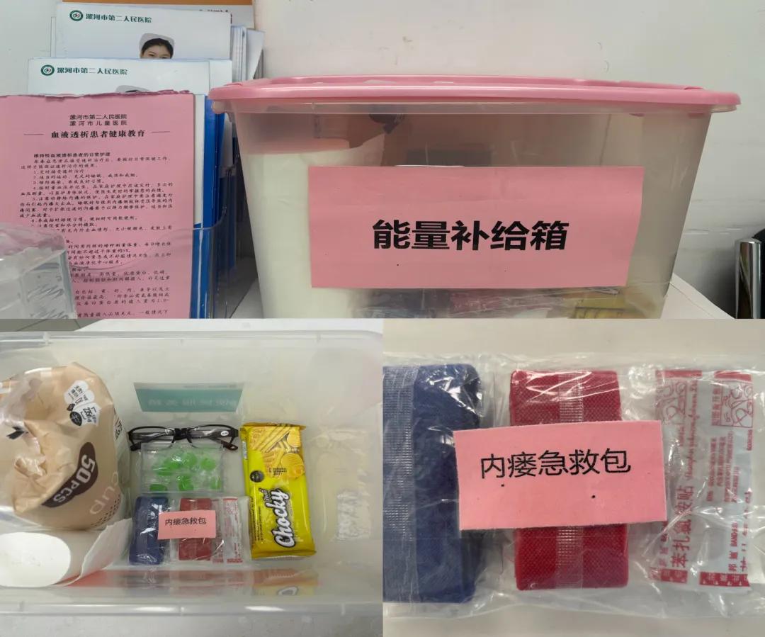 科室始終將患者的需求放在首位,設置了便民服務箱及能量補給箱以解燃眉之急,自備糖果、餅干等小零食,為患者提供能量補給。發放內瘺急救包,便于患者回家路途中處理突發情況,提高了患者滿意度。
