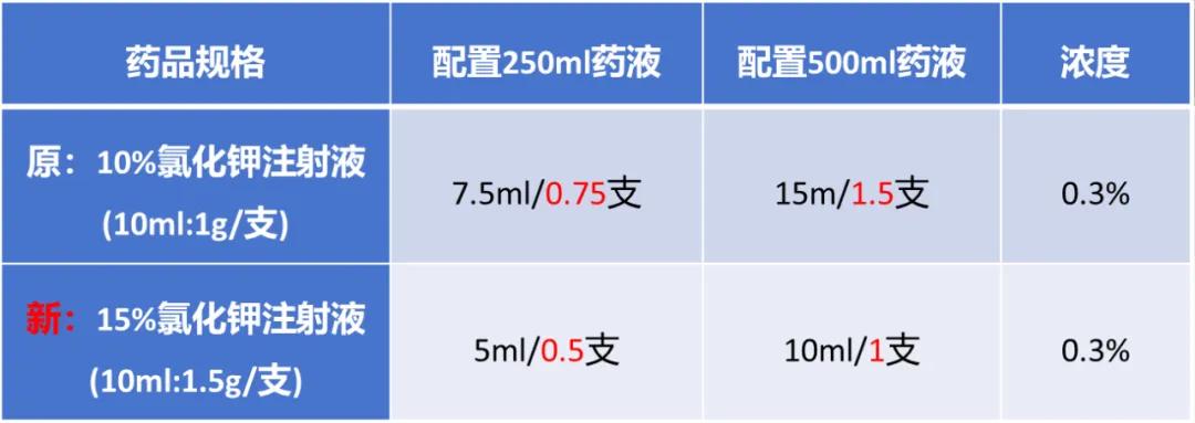 新規格風險點:15%氯化鉀每支含鉀20.1mmol,需嚴格計算溶媒中最大加入量;