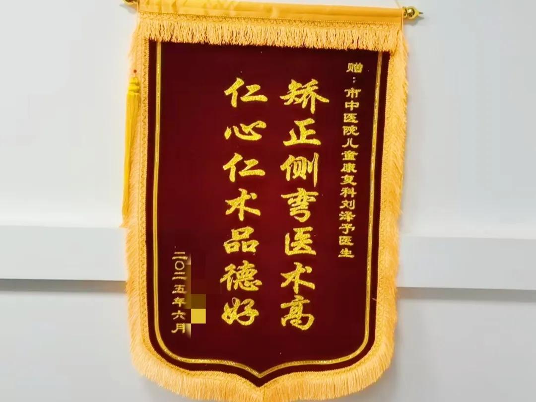 6月20日上午,漯河市中醫院青少年脊柱健康中心(青少年形體矯正中心)收到剛剛結束治療、康復出院的少年小明(化名)及其父母們專程送來的錦旗,上面寫著“矯正側彎醫術高,仁心仁術品德好”,以此表達對脊柱側彎治療團隊精湛技術與悉心指導的由衷感謝。