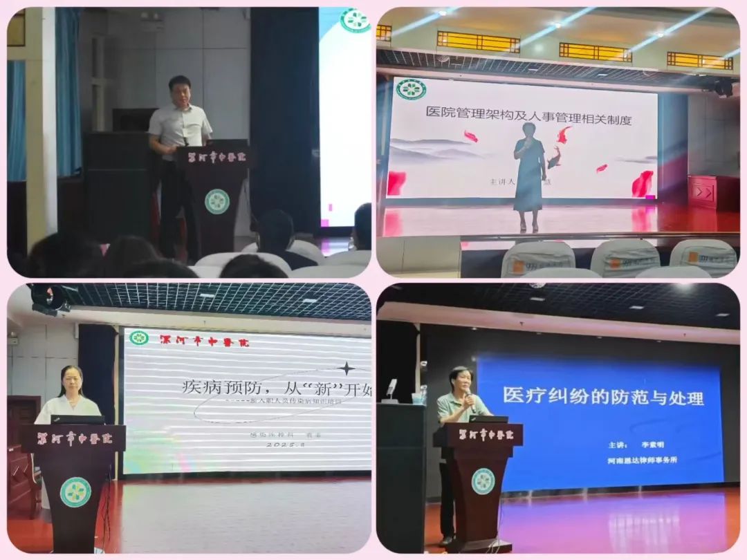 除了特色互動環(huán)節(jié),醫(yī)院還精心規(guī)劃了系統(tǒng)化、全方位的培訓課程,由班子成員及各職能科室負責人“傾囊相授”:從醫(yī)院文化、組織架構到廉潔從醫(yī)紀律,從醫(yī)保政策解讀、醫(yī)患溝通技巧到醫(yī)療糾紛防范;從醫(yī)療質量管理十八項核心制度、依法執(zhí)業(yè)規(guī)范,到傳染病防治法規(guī);從創(chuàng)文志愿工作要求、優(yōu)質服務禮儀,到急救技能實操、再到規(guī)培學員專屬的培養(yǎng)方案與管理制度……課程內容覆蓋職業(yè)發(fā)展全維度,既有理論高度,又有實踐深度,幫助新職工快速熟悉工作流程、掌握核心技能,為正式上崗做好充分準備。