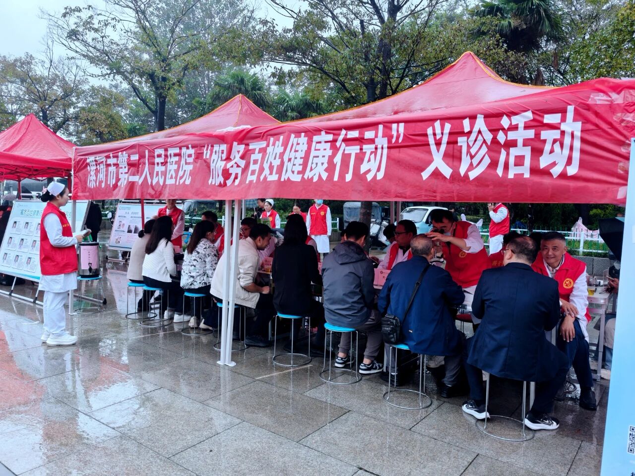 活動(dòng)由黨委副書記、院長胡海英帶隊(duì),盡管現(xiàn)場細(xì)雨淅瀝,義診專家們?nèi)蕴崆暗轿唬行蜷_展診療服務(wù),專家們熱情接待每一位前來咨詢的市民,耐心詢問他們的身體狀況、病史,仔細(xì)進(jìn)行體格檢查,并根據(jù)檢查結(jié)果給予專業(yè)的診斷和治療建議。對(duì)于一些患有慢性疾病的市民,專家們還詳細(xì)講解了日常飲食、運(yùn)動(dòng)、用藥等方面的注意事項(xiàng),幫助他們更好地管理自己的健康。同時(shí),現(xiàn)場還設(shè)置了健康宣傳展板,發(fā)放健康宣傳資料,向市民普及常見疾病的預(yù)防知識(shí)和健康生活方式,增強(qiáng)市民的健康意識(shí)和自我保健能力。