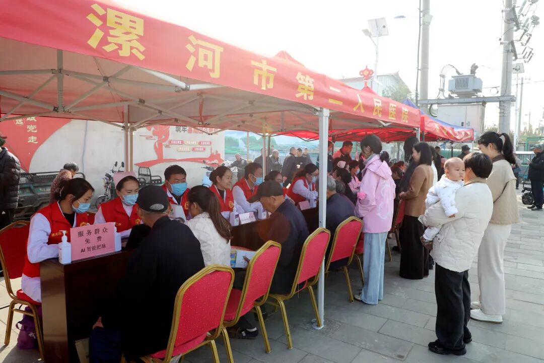 11月14日上午,“健康漯河行,愛(ài)衛(wèi)下基層”活動(dòng)走進(jìn)臨潁縣瓦店鎮(zhèn)大李村,作為本次活動(dòng)的重要參與單位,市二院積極響應(yīng)市衛(wèi)健委、市愛(ài)衛(wèi)中心號(hào)召,組織多學(xué)科專(zhuān)家志愿者團(tuán)隊(duì),為當(dāng)?shù)卮迕駧?lái)了一場(chǎng)集診療服務(wù)、健康科普于一體的大型公益義診。