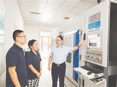 李彥紅(右)和同事察看公司設(shè)備。