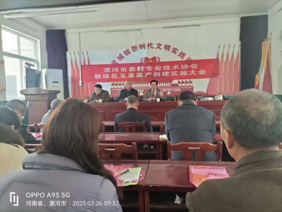 2023年3月26日上午,漯河市農村專業技術協會在吳城鎮召開玉米高產創建實施大會。來自舞陽縣吳城鎮的種植大戶,家庭農場主和權味花種植專業合作社參加了會議。
