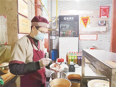“為了迎接美食嘉年華活動(dòng),我們提前備好了食材,在提供優(yōu)質(zhì)服務(wù)的同時(shí),全部手工制作,讓游客享用到漯河特色美食。”布衣巷一家米皮店店員李冰說。