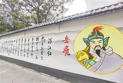 柳江一巷岳飛主題文化墻。 記者 張麗霞 攝
