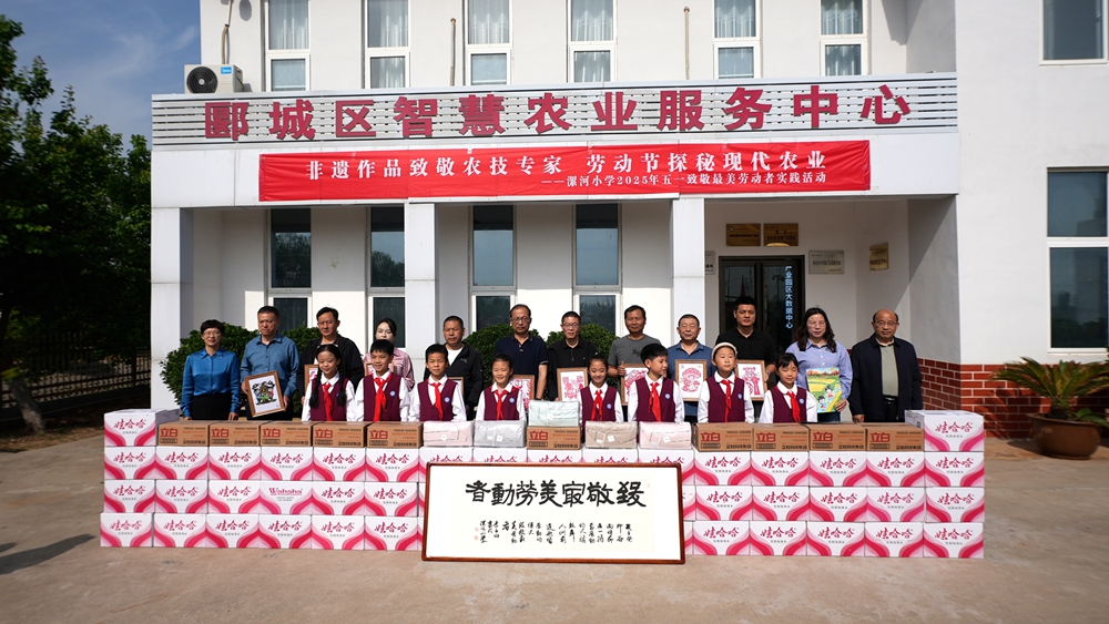活動(dòng)伊始,漯河小學(xué)學(xué)生代表王彬宇、王鈺萱、田景銳、夏華苒深情朗誦獻(xiàn)詞《致敬農(nóng)技專家》。隨后,少先隊(duì)員們將精心準(zhǔn)備的剪紙、書(shū)法、繪畫(huà)等非遺作品贈(zèng)予農(nóng)技專家,以表達(dá)對(duì)這些“大地追夢(mèng)人”的崇高敬意。隨后,漯河市郾城區(qū)農(nóng)業(yè)農(nóng)村局黨組書(shū)記、局長(zhǎng)張韶杰等領(lǐng)導(dǎo)及農(nóng)業(yè)科學(xué)家團(tuán)隊(duì)代表登臺(tái),接受這份滿含童真與感恩的心意,并與少先隊(duì)員們合影留念。