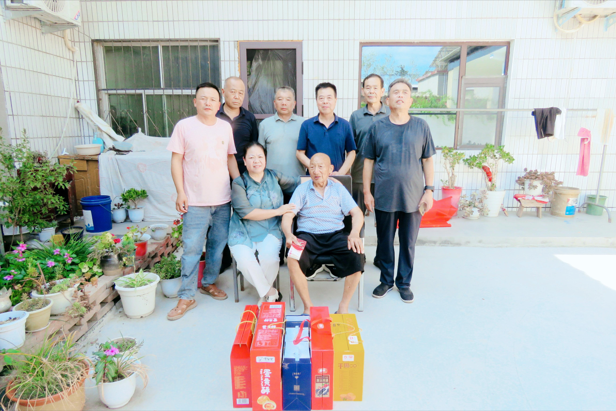 圖為臨潁縣和許昌市的部分參戰老兵郭群周、范花杰、封俊杰、宋國現、軒根慶等戰友一起,陪同湖南省永州市道縣退休女教師、愛心人士施羿,親切看望和慰問了全國一級“戰斗英雄”李海欣烈士的父親李銀秀,并為老人家捐贈了慰問品和慰問金。