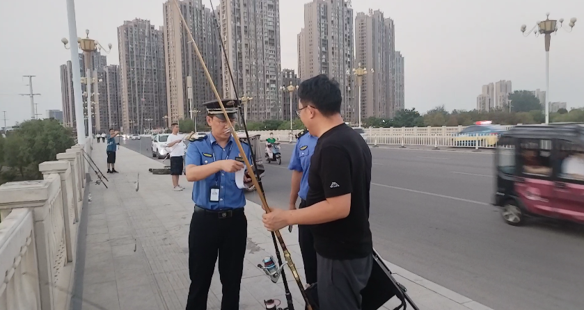 “晚上橋面光線不好,來回過往的行人和非機動車輛也多,您在這兒垂釣實在是不安全啊,趕快收竿回家吧。”8月3日20時許,在漯河市金山路沙河橋上,經開區城市管理綜合行政執法大隊大隊長曹陽帶領夜間執法人員在轄區范圍內開展橋面垂釣治理行動。