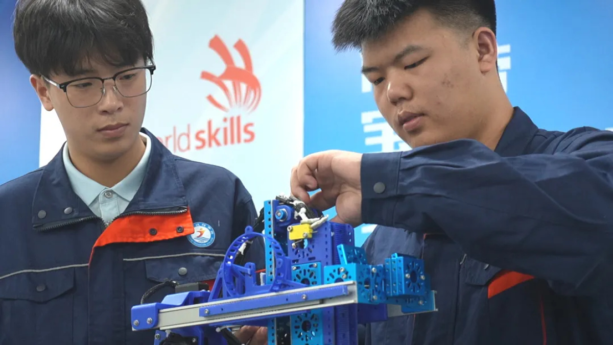 2025年9月,第三屆全國技能大賽閉幕式的聚光燈下,“自主移動機器人(世賽選拔項目)”金牌得主的名字響起——介明鑫與楊奇瑞。兩人揮手快步上前,戴上獎牌的那一刻,有太多未說盡的故事:這不是一枚屬于個人的獎牌,是兩個00后技能青年用一千多個日夜的汗水、上千次的技術攻堅,以及彼此交付后背的信任,共同熔鑄的青春勛章。