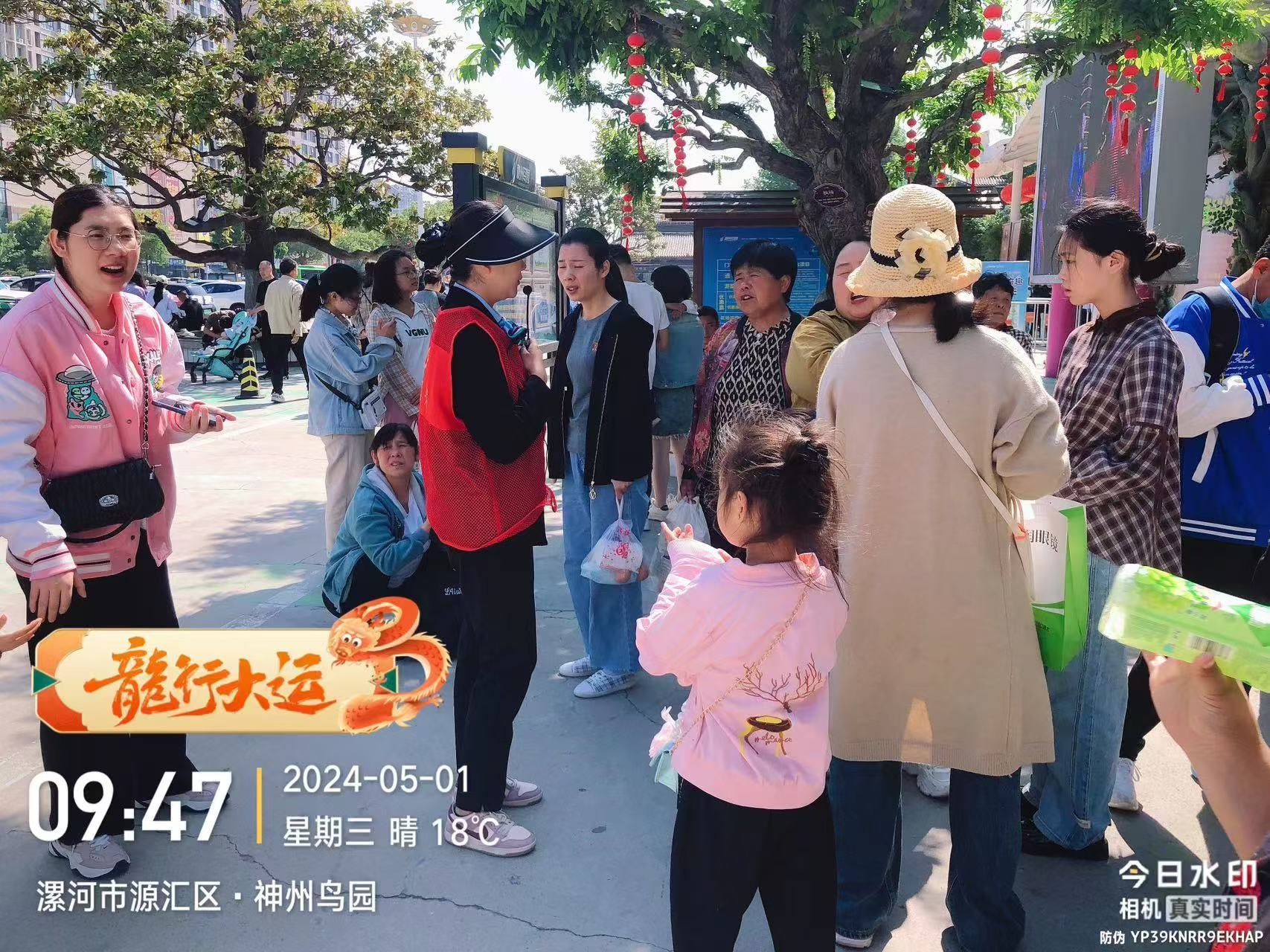 五一期間,在神州鳥園,志愿者對游客文明引導
