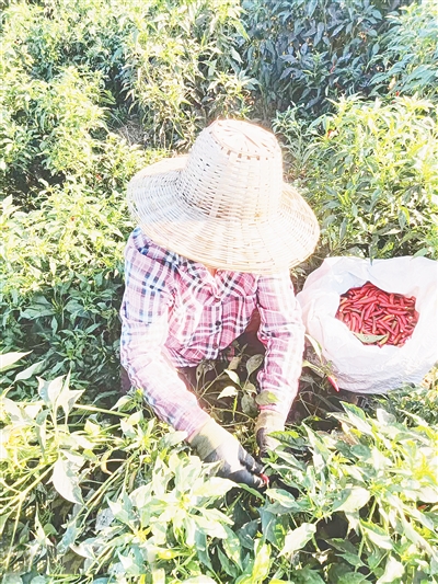 辣椒種植基地不僅讓該村村民增收,還為附近村莊的村民提供了在“家門口”就業的機會。從土地平整、栽秧到如今的采摘分揀,西軍王村及附近村莊的40多名村民在基地務工。“摘1公斤辣椒掙1塊錢。俺一天能摘70公斤,照顧老人和賺錢兩不誤。”正在摘辣椒的村民張秀琴高興地說。