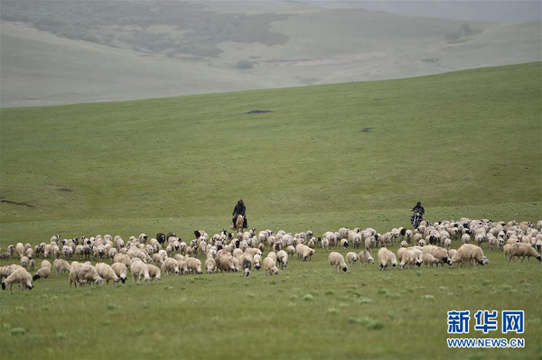 牧群在阿魯科爾沁草原上覓食(6月3日攝)。