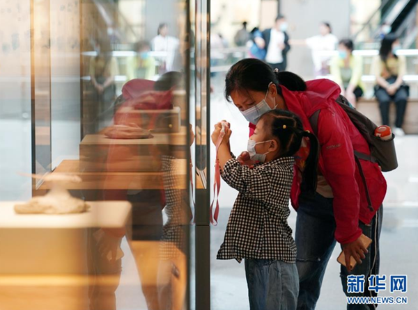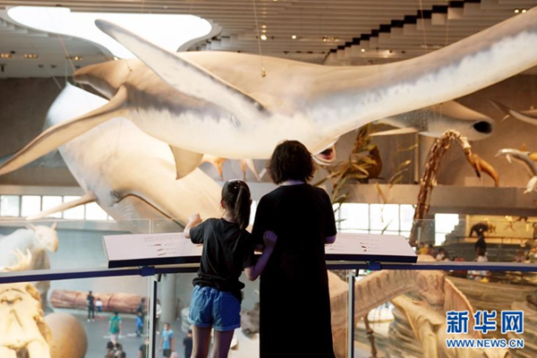 7月15日,觀眾在上海自然博物館參觀。 進入暑假,不少家長帶著孩子到上海自然博物館參觀。該展館采取實名制分時段購票參觀、參觀人數分時限流、發布次日參觀人數預測等舉措,加強防疫常態化管理。 新華社記者 劉穎 攝