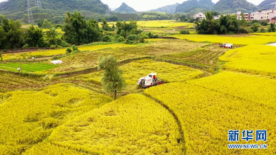 近日,在廣西柳州市魚峰區里雍鎮龍江村,各種農用機械開進場,拉開了早稻收割的序幕。一眼望去,成片的早稻在陽光下金燦燦一片,當地農民抓緊晴好天氣收獲歸倉。