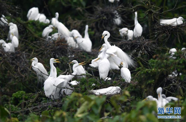 在南昌市新建區象山森林公園內,白鷺和雛鳥們在一起(5月18日攝)。
