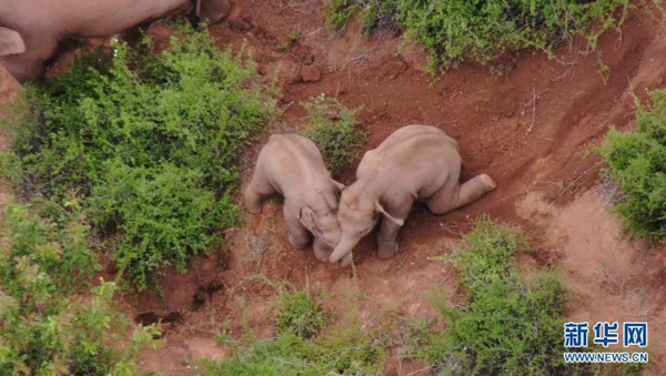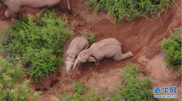 6月17日在玉溪市易門縣十街鄉拍攝的小象嬉戲打鬧瞬間(無人機視頻截圖)。