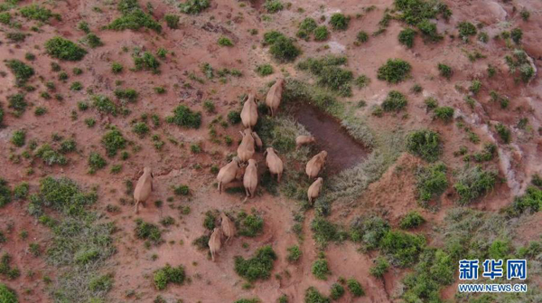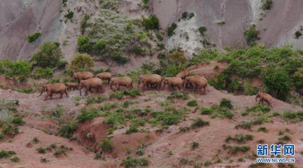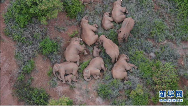 6月17日在玉溪市易門縣十街鄉拍攝的象群(無人機視頻截圖)。