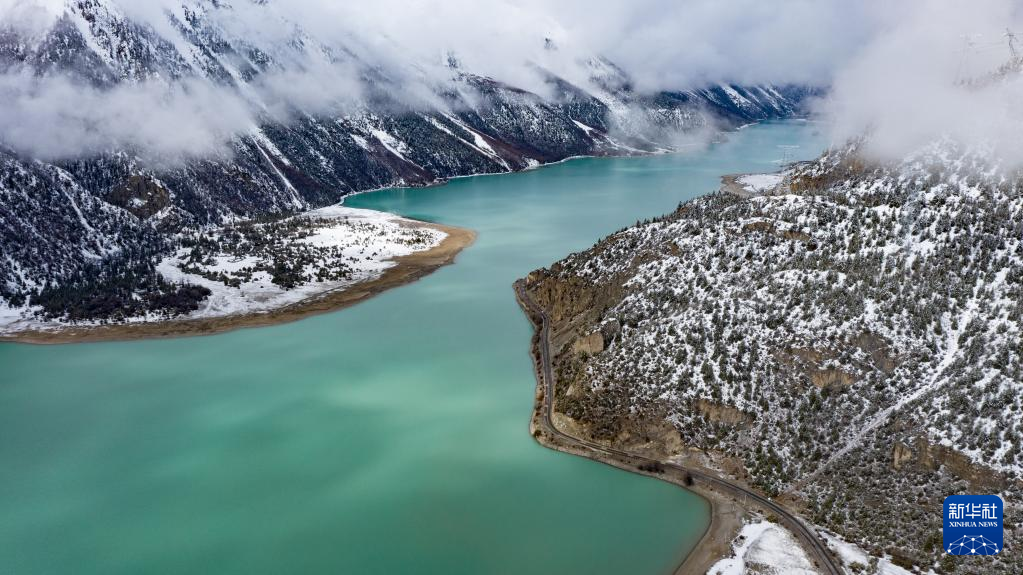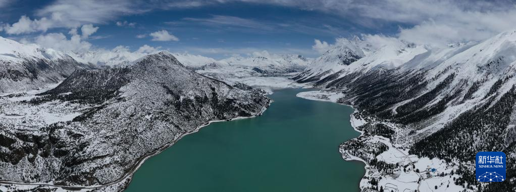 這是無人機拍攝的然烏湖(4月24日攝)。