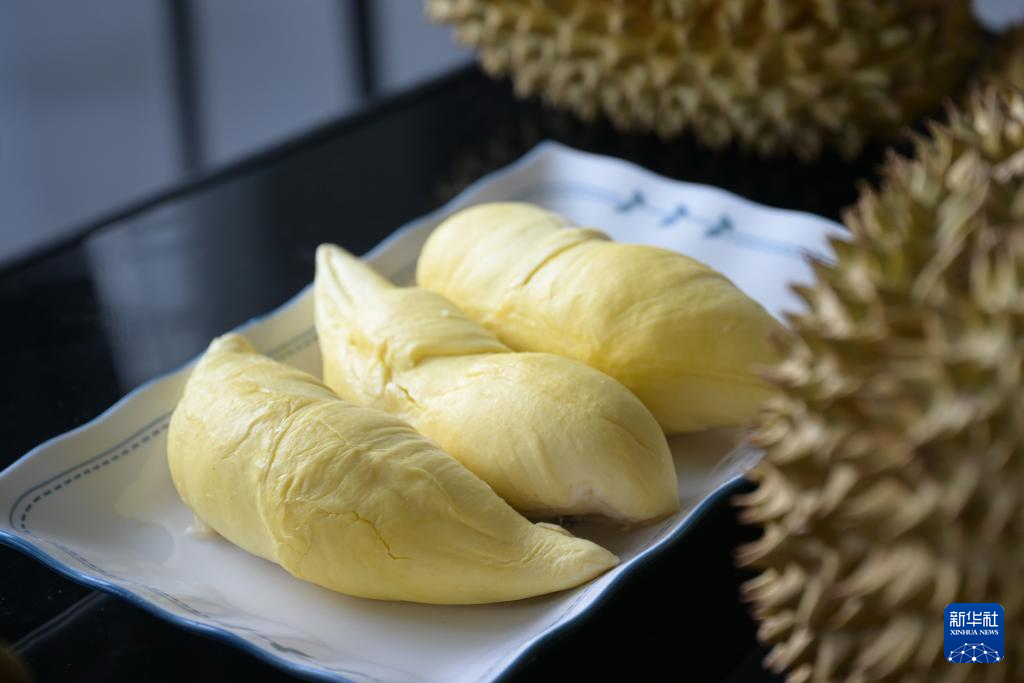 7月20日在海南省三亞市優旗大嘴鳥榴蓮園一號基地拍攝的國產榴蓮果肉。