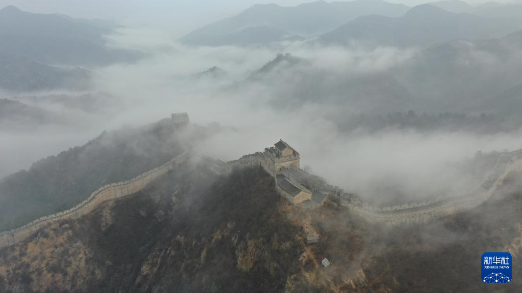 這是11月14日清晨在河北省承德市灤平縣拍攝的金山嶺長城云霧景觀(無人機照片)。