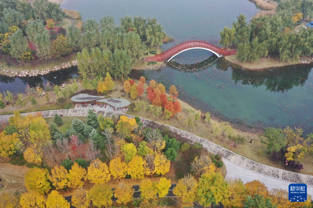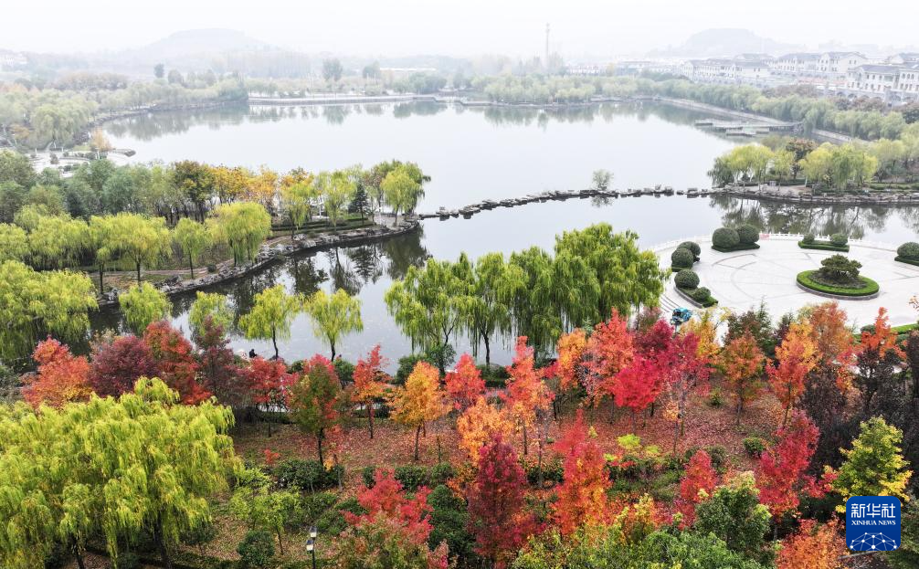11月14日在河南省焦作市溫縣子夏公園拍攝的景色(無人機照片)。