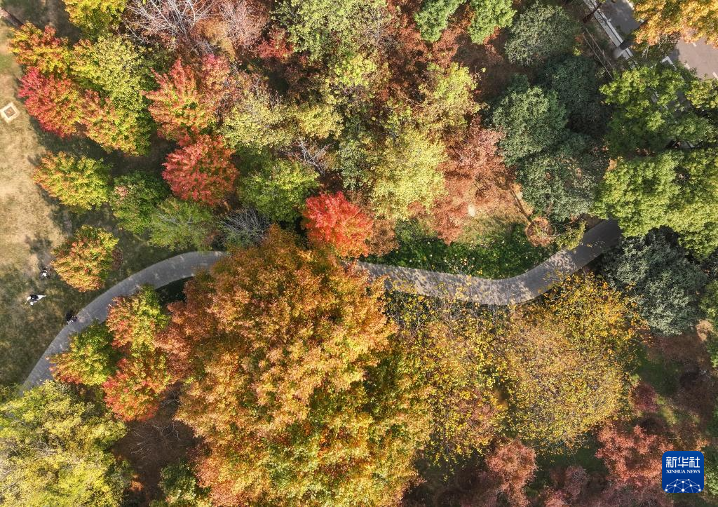 11月14日,游人在武漢市東湖風景區游覽(無人機照片)。