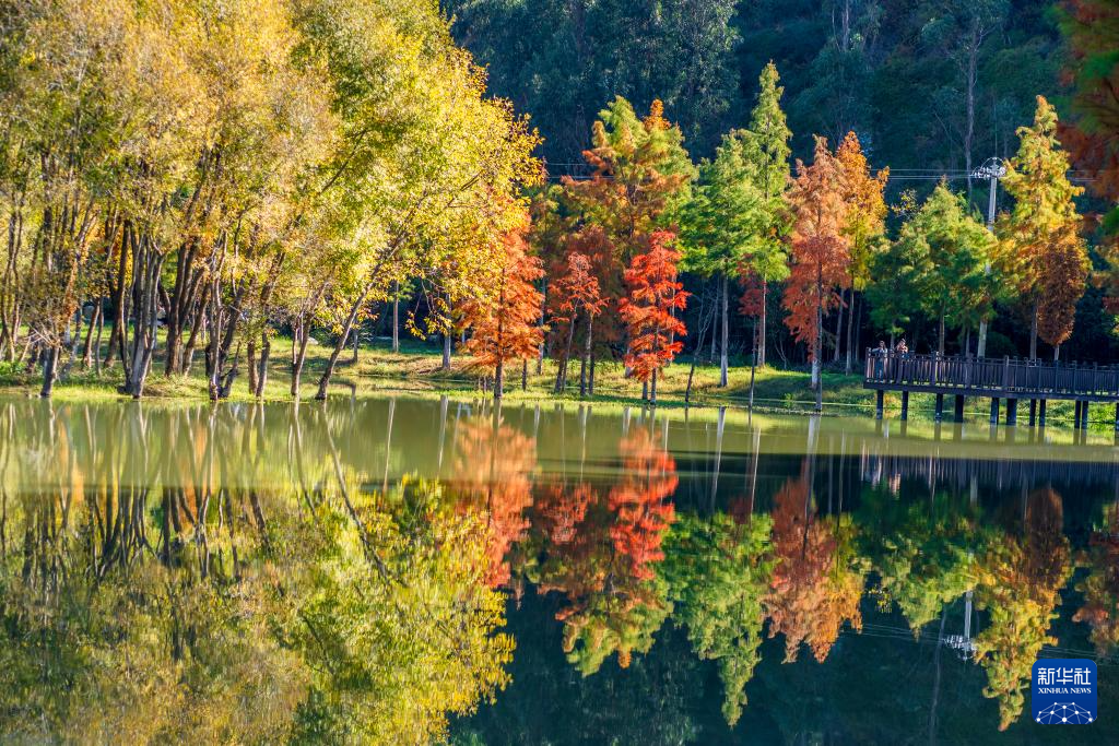 11月14日,游客在云南省大理白族自治州洱源縣茈碧湖濕地游玩。