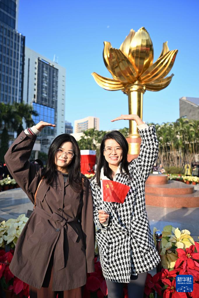 12月20日,澳門特別行政區政府隆重舉行升旗儀式,慶祝澳門回歸祖國25周年。這是人們在觀看升旗儀式后留影。