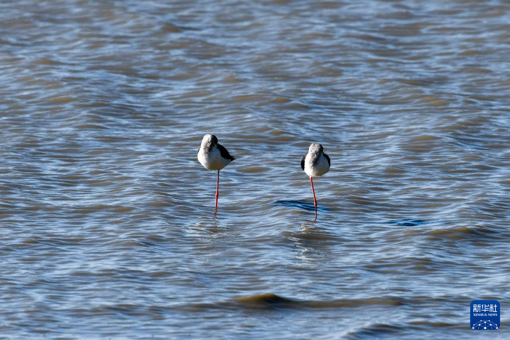 11月29日,在深圳紅樹林海濱生態公園,兩只黑翅長腳鷸在休息。