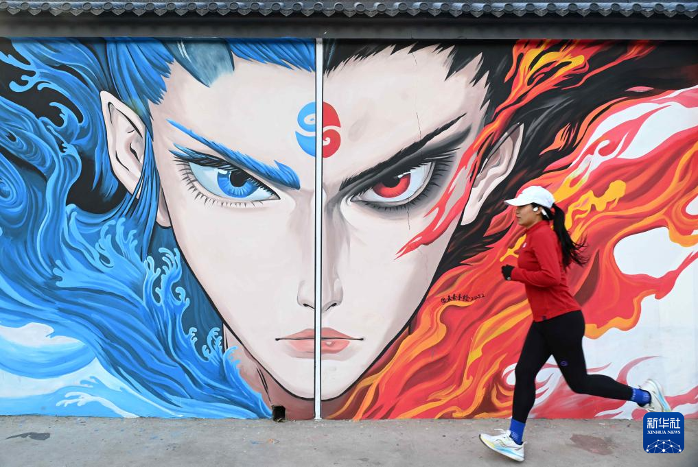 2月15日,市民從石家莊市裕華區一處哪吒主題墻繪前路過。