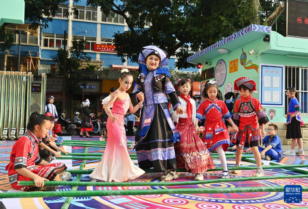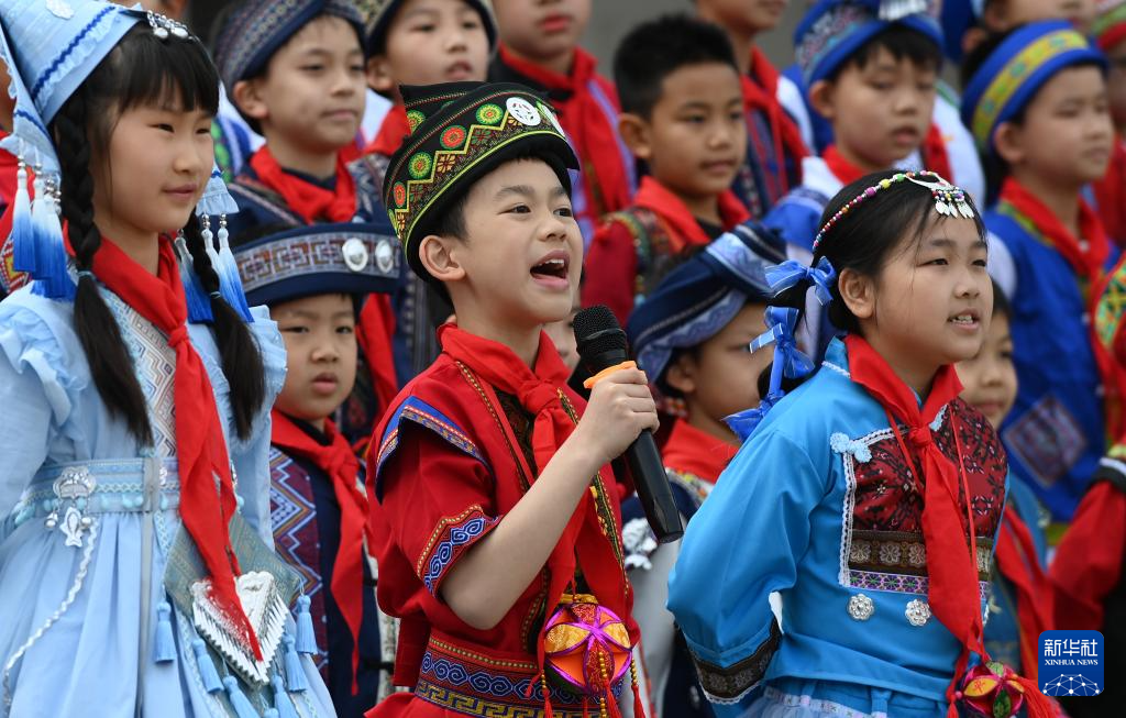 當日,廣西南寧市民族大道東段小學舉行2025年“鑄牢中華民族共同體意識”主題活動暨“廣西三月三”民族藝術節,孩子們以多種方式喜迎佳節。